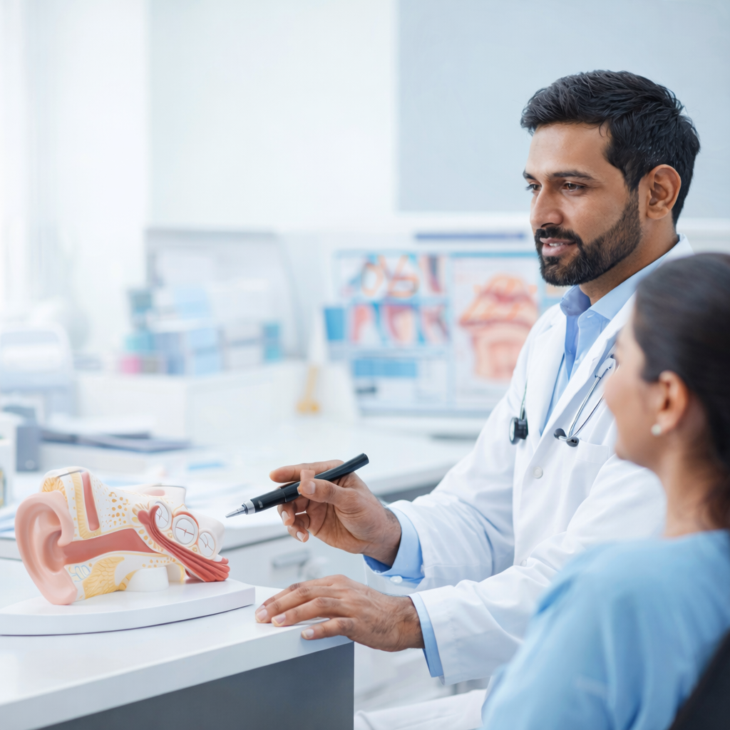 A complete evaluation of ear, nose, and throat symptoms such as pain, blockage, infection, dizziness, hearing difficulty, and throat discomfort, followed by a clear diagnosis and treatment plan.